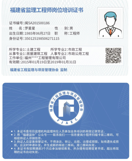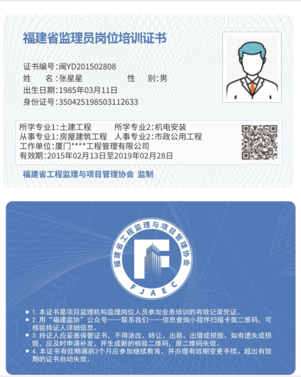 第二条 福建省工程监理与项目管理协会建立“福建省建设工程监理从业人员信用信息系统”,为相关行业协会、会员单位及相关单位提供监理人员岗位培训管理、从业人员信用信息管理服务,信息录入范围包括注册监理工程师持证人员、岗位培训证书持证人员。